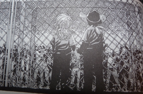 Ensuite, la scène finale où Rick dit » C’est nous les morts-vivants« . Constat brut et pessimiste de leur situation. Ce n’est pas nouveau cependant car ils ont déjà renoncé à la possibilité d’être secouru dans le tome 2. Ici j’ai l’impression cependant que Rick rajoute une couche de pessimisme par dessus tout : non seulement personne ne viendra les sauver et ils vont vivre ainsi toute leur vie, mais en plus il est impossible pour eux d’aller de l’avant. Ils vont errer dans les limbes, le purgatoire de cette vie qui n’en est pas une, jusqu’à leur « mort ».