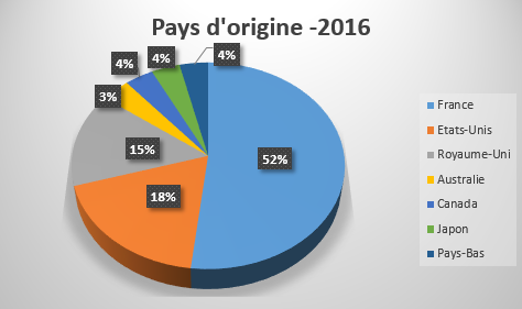 Je suis un peu étonnée de la prééminence de la France dans ce bilan des pays d’origine des auteurs lus cette année. Au final c’est très positif, même si en matière d’auteurs francophones, je pourrais me pencher davantage sur ceux issus du plat pays qui est le mien (zéro pointé :D)