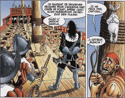 - l’humour : il y a des situations qui m’ont bien fait rire, par exemple la prise d’otage des réserves de nourriture sur le bateau pirates ou encore |to add] . Cf la case ci-dessus.